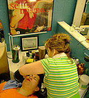 Edmundo reclines in his favorite barber's chair as a single blade scrapes down his throat. He likes to come here after work to get a shave and a haircut before the weekend's festivities get started. So what are his plans?