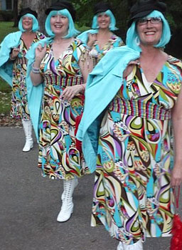 The Caskettes dressed up to see RESPECT (a musical review of women singers) at the Chanhassen Dinner Theater. (From back to front: Mimi, Babs, CindyLee, Delna)