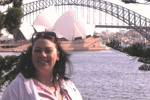 Megan Chaney in front of the Sydney Opera House while on tour with CSUF choir.