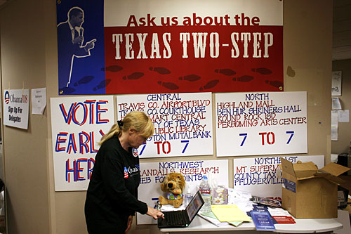 A volunteer at the Austin, Texas, offices of Sen. Barack Obama. The Illinois Democrat lost to rival Sen. Hillary Clinton on Tuesday, but the race to decide the Democratic nominee for president is far from over.