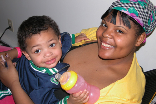 Tyondra Newton, pictured in 2007 taking care of her cousin's child, Miguel. After growing up alone, she wants to keep her family together.