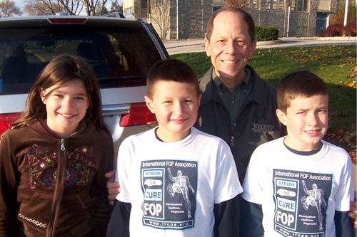 Dr. Fred Kaplan and Jenna, Justin and Jared Henke at a recent Stride to Cure FOP event.